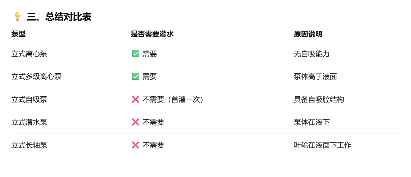 ⚙️ 二、特殊情況:某些立式泵不需要灌水